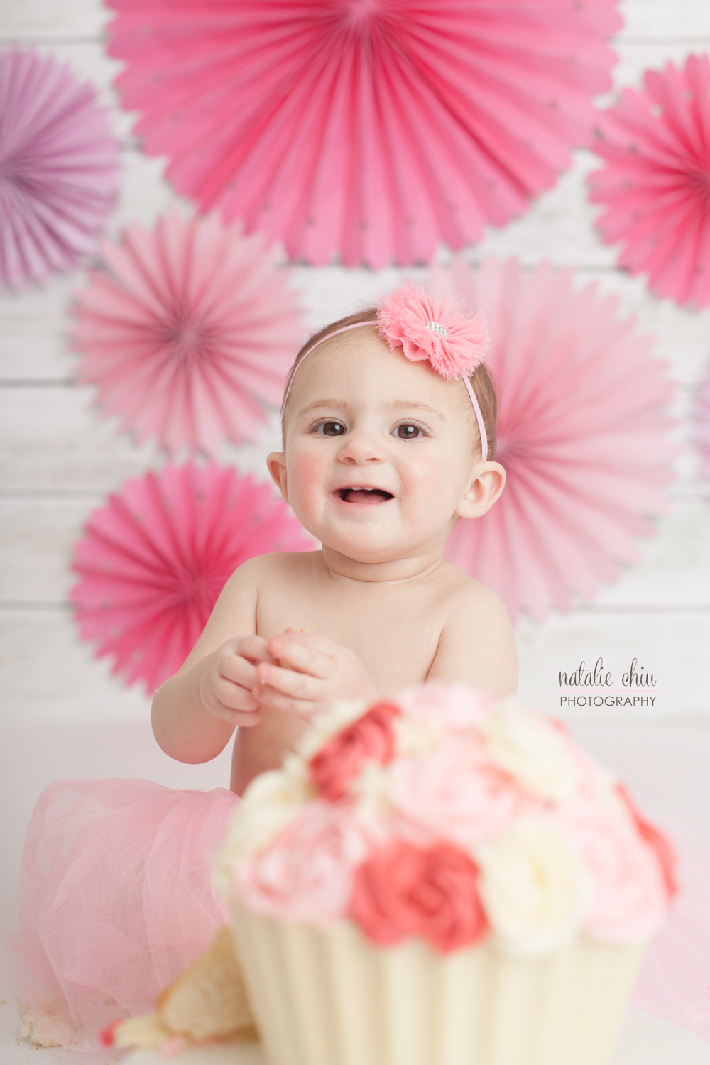 Over the weekend, I took such a sweet cake smash photo session of a little darling that I first met when she was just a tiny newborn. I feel so honoured to be capturing some key milestones in the first year of her life! This cake smash took a bit of preparation from the paper rosettes to the delicious vanilla smash cake. I've never made rosettes before and although the concept seemed rather simple, the execution took me quite some time . Crafting can sometimes be a love-hate relationship! lol In the end, I absolutely LOVED the way it all turned out. I have to give my hubby lots of credit for helping me out and mounting them to my backdrop!